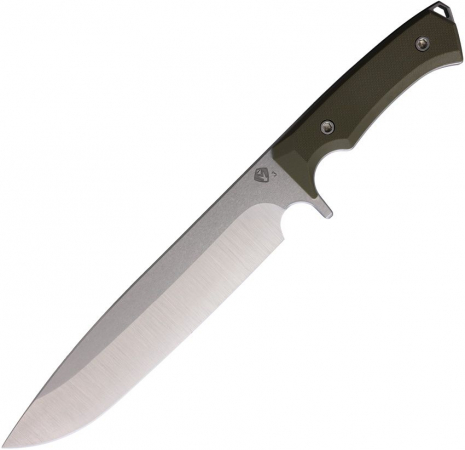 12.5" (31.75cm) overall. 8" (20.32cm) tumbled finish 3V steel blade. OD green G10 handle. Full, extended tang. Lanyard hole. OD green Kydex belt sheath. Boxed.