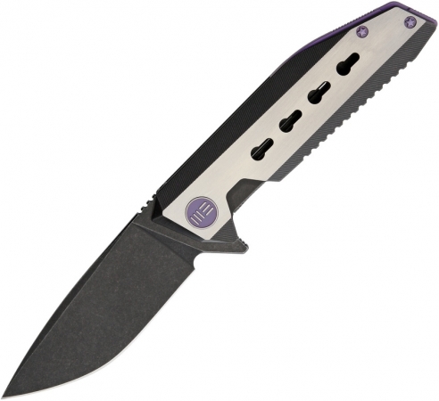 Closed: 5"; Blade: 3.75" | S35VN Stainless | Standard Edge | Black Stonewash Finish; Handle: Titanium; Other Info: Extended Tang | Thumb Ridge | Pocket Clip. Black and silver handles. Black nylon zippered storage pouch. Boxed.