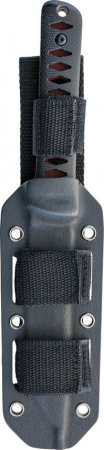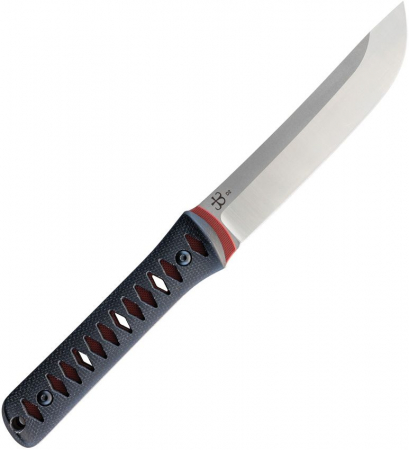 10" (25.4cm) overall. 5" (12.7cm) stonewash and satin finish D2 tool steel blade. Black canvas micarta handle. Full tang. Lanyard hole. Red G10 liners. Black Kydex belt sheath. Boxed.