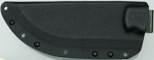 11.88" (30.18cm) overall. 6.38" (16.21cm) black traction coated 1095HC steel blade. Lanyard hole. Full tang. Rocky Mountian Tread black linen micarta handles. Black Kydex belt sheath.