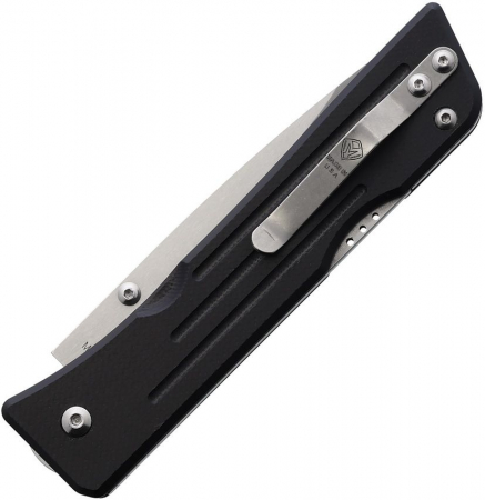 4.25" (10.8cm) closed. 3.25" (8.26cm) tumbled finish S45VN stainless drop point blade. Black G10 handle. Thumb stud. Pocket clip. Black nylon zippered storage case. Boxed.