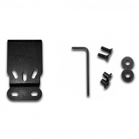 Our multi-position Belt Loop kit for Kydex Sheaths. Designed to be mounted on sheaths with either 1" or 3/4" spaced holes positioned for vertical, horizontal, or 45 degree angles. Includes the Belt Loop, 2 stainless steel screws, two stainless steel posts, 2 rubber spacers, and a hex key.
