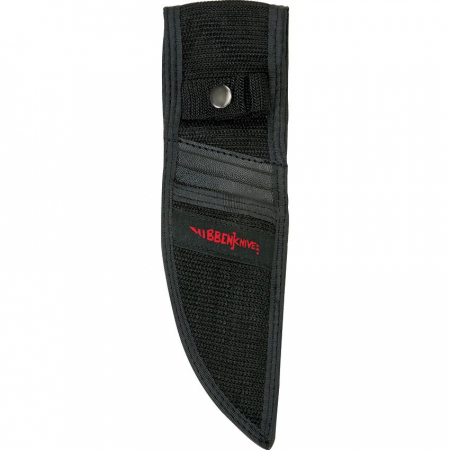 8.75" overall. 4" stainless blade. Black cord wrapped handle. Lanyard hole. Full tang. Sheath holds set of three throwing knives. Black nylon belt sheath.