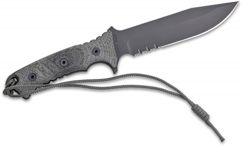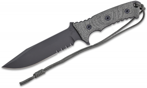 Featuring a black PVD 6" clip point blade and a handle of durable, textured, black canvas Micarta, the Pacific is available with or without a double row of serrations on both sides of the blade to cut aggressively through fibrous material. A glass breaker at the back of the handle is convenient and effective in an emergency.