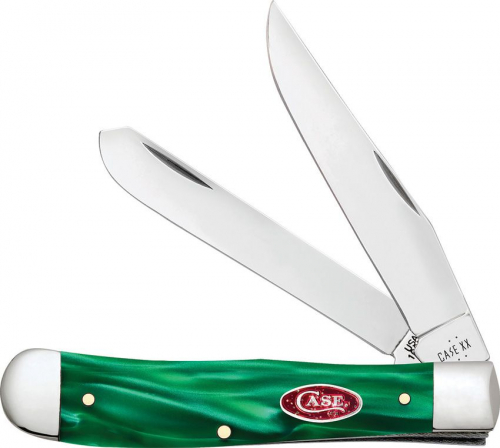 10254 SS pattern. 4.13" (10.49cm) closed. Mirror finish stainless clip and spey blades. Green pearl Kirinite handle. Nickel silver bolster(s). Inlay shield. Boxed.