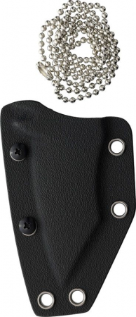5.25" (13.34cm) overall. 3" (7.62cm) acid washed finish D2 tool steel modified drop point blade. One-piece construction. Lanyard hole. Finger ring. TekLok and ball chain lanyard. Black Kydex belt sheath. Bagged.