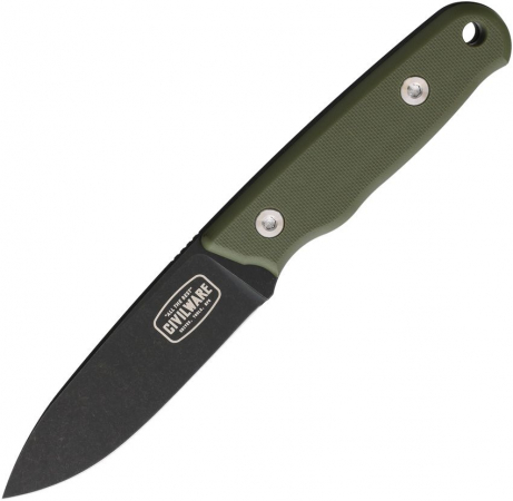 7.13" (18.11cm) overall. 3.38" (8.59cm) black DLC coated D2 tool steel drop point blade. OD green G10 handle. Full tang. Lanyard hole. Black Kydex belt sheath. Boxed.