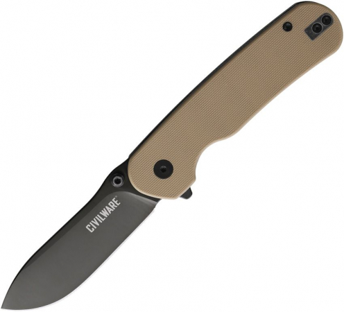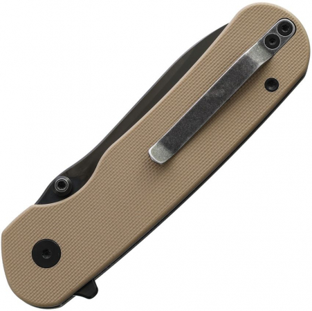 4.25" (10.8cm) closed. 3" (7.62cm) black DLC coated flat ground 14C28N Sandvik stainless blade. Coyote tan G10 handle. Extended tang. Thumb stud. Pocket clip. Boxed.